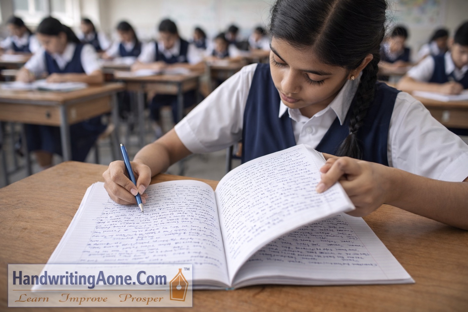 Examinations become longer and more structured. Students must maintain writing consistency for several pages within limited time. Teachers also begin paying greater attention to presentation, alignment and readability.
