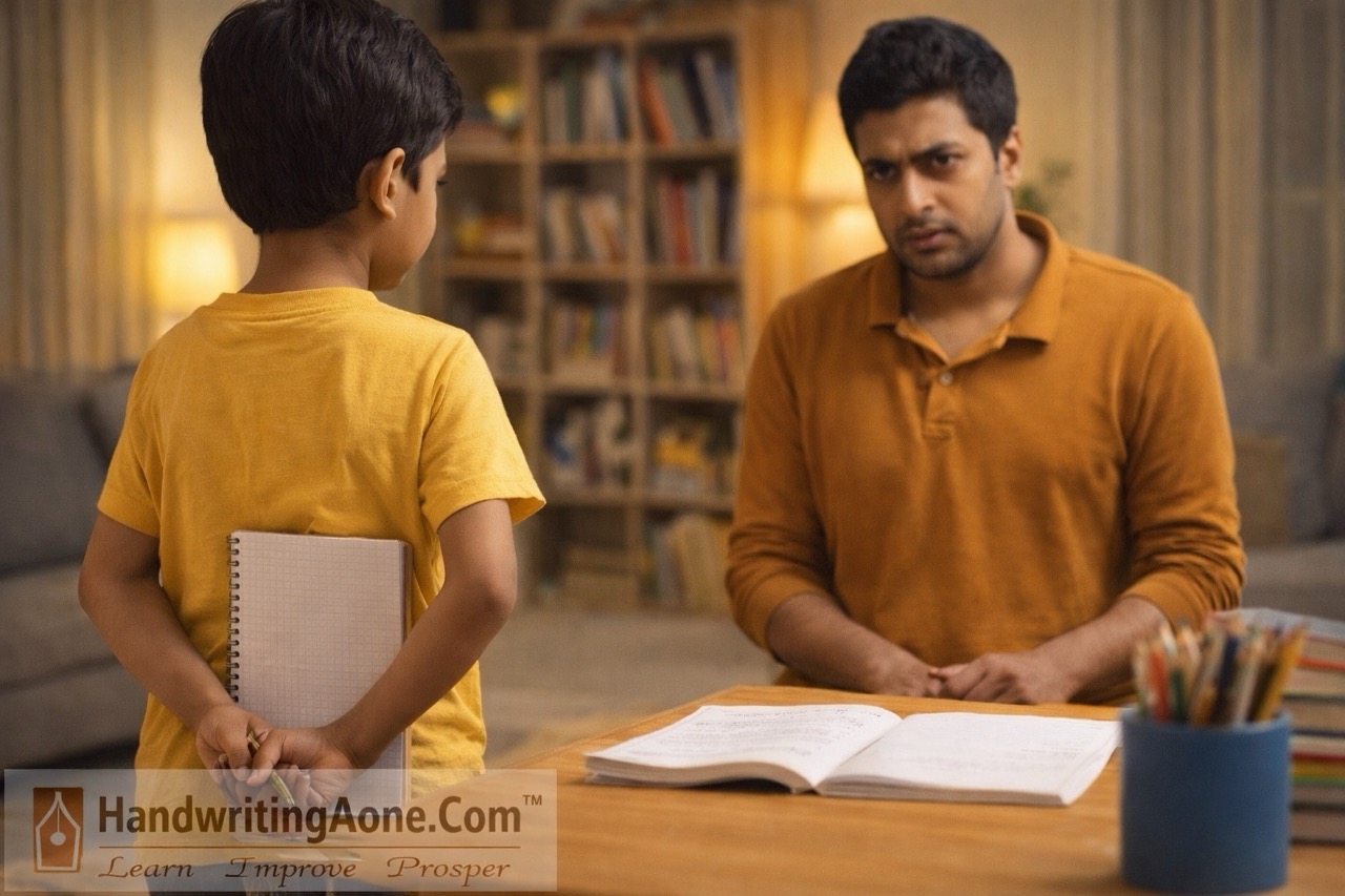 Child writes slowly, fears mistakes, erases repeatedly, lacks confidence.