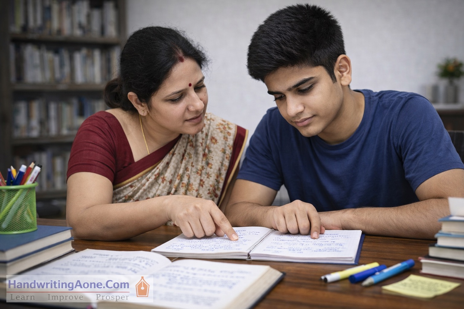 mother guiding teenage student while explaining lessons from notebookSeriousness begins with small habits: